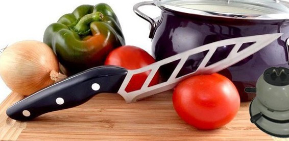 Кухонний прилад Відомий своєю практичнотою, завдяки дивовижній конструкції та аеродинамічному дизайну. Весь секрет полягає в спеціальних отворах, які були розроблені до дрібниць так, щоб користуватися приладом якомога зручно, не відчуваючи дискомфорту на кухні. На відміну від звичайних ножів, продукти при нарізці ніколи не прилипають до Aero knife.